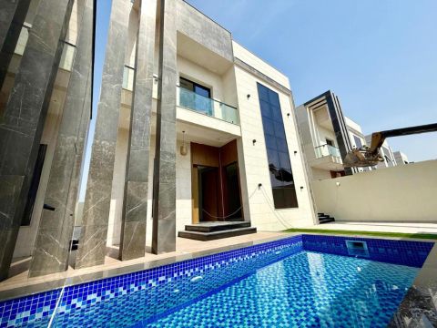 فيلا للبيع في عجمان - الزاهية 4 غرف ماستر + مجلس + صالة مطبخ رئيسي + مطبخ تحضيري مسبح خاص شارع وسكة مساحة الأرض 3014 قدم مساحة البناء 2700 قدم تشطيب فاخر وموقع مميز السعر 1650000 شامل التسجيل قابل للتفاوض