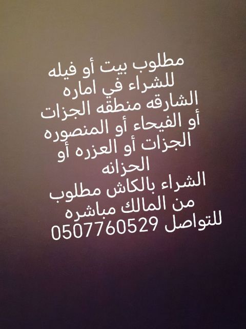 مطلوب بيت أو فيلا كبير للشراء ب الشارقة عدد الغرف لا يقل عن 7 في حدود 2 مليون و500 ألف