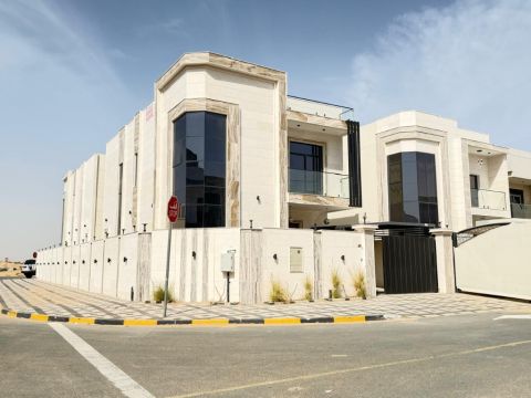 للبيع فيلا سكنية استثمارية فاخرة في عجمان - الزاهية تفاصيل الفيلا تشطيب سوبر ديلوكس حجر ورخام موقع مميز على شارعين قارين + مواقف سيارات مساحة الأرض 3014 قدم مساحة البناء 3500 قدم سخان مياه مركزي سولار + كهرباء ضمان سنة على الفيلا الدور الأرضي صالة، مجلس، غرفة ماستر، مطبخ مجهز، غرفة خادمة، مكان للغسالة، مكان جلوس للحفلات، حديقة صغيرة الدور الأول 4 غرف ماستر، صال