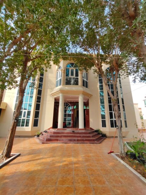 Luxurious villa with high - end finishing (first inhabitant) for rent in Al Rawda 2, consisting of ground floor + first floor + roof, fully stone, includes 7 spacious master bedrooms, 10 bathrooms, men'Majlis, women'hall, maid's room, large kitchen with storage, central air conditioning, spacious courtyard, front parking, and a large roof, with a building area of