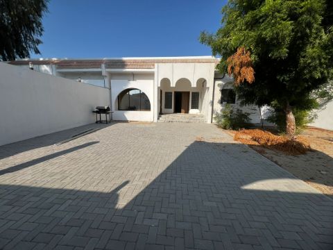 For rent in Al Dhait South A villa with 3 bedrooms, a living hall, a separate Majlis, an indoor kitchen, and a maid’s room, equipped with air conditioners. A large yard with space for gardening. Price AED55000 with maintenance, or AED50000 without maintenance