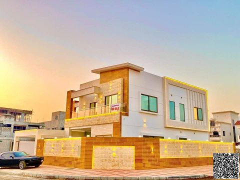 Villa for annual rent in Al Yasmeen, Ajman. Second - occupancy, ready to move in. Two floors with a Majlis, two living rooms, 5 master bedrooms, 7 bathrooms, maid’s room, fully equipped main kitchen, prep kitchen, and full split AC Includes an indoor yard and front parking space. Modern design with 24/ 7 security and maintenance, located in a quiet family - friendly area. Price AED90000