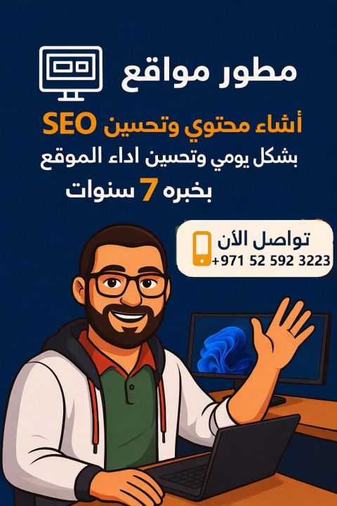 انشاء محتوى وتحسين Seo وتحسين أداء المواقع وتصميم وانشاء وصيانة الموقع الالكتروني خبرة 7 سنوات في مجال تطوير وتحسين المواقع الالكتروني المهندس / مصطفى أحمد