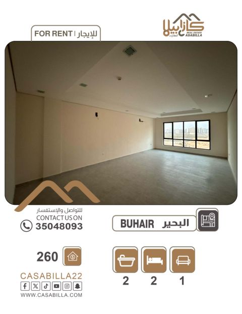 للإيجار: شقة في الرفاع البحرين. مواصفات الشقة: غرفتا نوم ماستر، حمامان، صالة واسعة جداً، ومطبخ. الخدمات والمرافق: غرفة حارس، موقف سيارة مظلل، موقع مميز وقريب من جميع الخدمات. سعر الإيجار: 260 دينار بحريني. للتواصل والاستفسار.