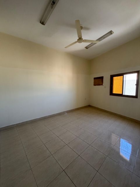 للإيجار: شقة في أبو صيبع تتكون من غرفتي نوم وصالة ومطبخ وحمامين. سعر الإيجار هو 120 دينار بحريني.
