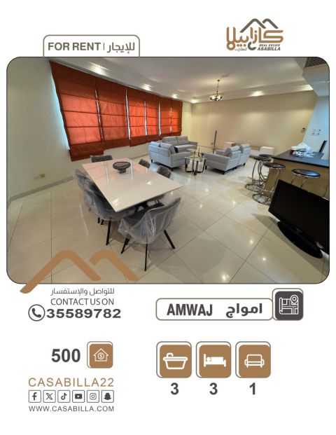 شقة للإيجار في جزر أمواج 3 غرف نوم شامل الكهرباء بناية حديثة للإيجار شقة واسعة في جزر أمواج داخل بناية حديثة وموقع حيوي، مناسبة للعائلات، وقريبة من جميع الخدمات. مواصفات الشقة 3 غرف نوم 3 حمامات صالة مريحة مطبخ عملي بلكونه مميزات البناية بناية حديثة مصعد بركة سباحة صالة رياضية موقع مميز قريب من جميع الخدمات الإيجار الشهري 500 دينار بحريني شامل الكهرباء (حد 30 دينار) للتواصل والاستفسار