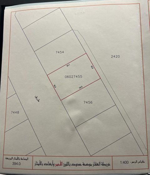 For sale, a plot of land in Al-Akar Al-Gharbi, very close to the sea. Classification: RA. Area: 394 square meters. Price per foot: 28 dinars. Total price: 118,000 dinars. For inquiries and requests, please contact the following numbers: Nizar Al-Sagheer, Abdulfattah Hassan. Office: Masar Al-Mustaqbal Real Estate. All properties required directly from the owner.