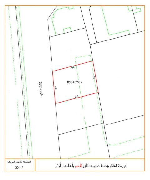 للبيع أرض في المالكية - المساحة 304.7 متر مربع - التصنيف سكني RB - سعر القدم 27135 دينار - السعر الإجمالي 89000 دينار