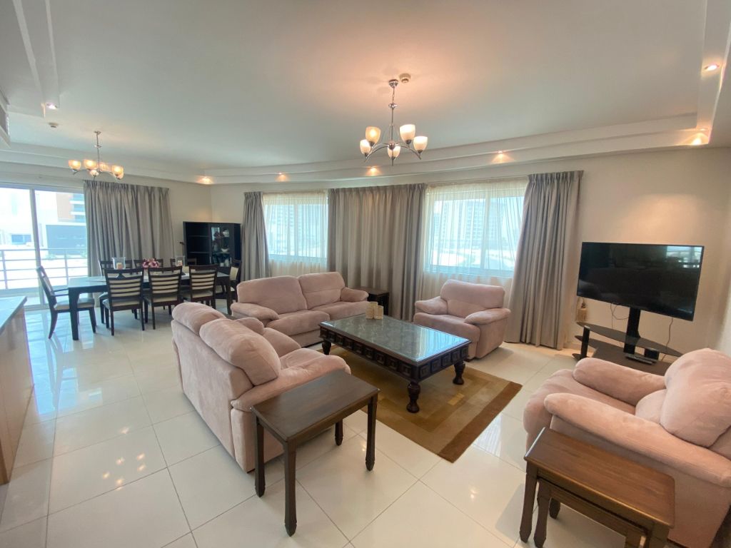 دومينز العقارية للبيع والإيجار. شقة مفروشة في أمواج، تقع في موقع مميز في قلب جزيرة امواج، بالقرب من جميع الخدمات والمرافق الحيوية. تتكون الشقة من غرفتي نوم، حمامين، صالة كبيرة، مطبخ مفتوح، وبلكونتين. المرافق المتوفرة تشمل حراسة على مدار الساعة، صيانة دائمة، صالة ألعاب رياضية، بركة سباحة، غرفة بخار، جاكوزي، ومنطقة شواء. مساحة الشقة 139 متر مربع. الإيجار 350 دينار بحريني شامل الكهرباء لحد 30 دينار. الشقة