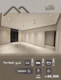 للبيع: شقة تملك حر لجميع في منطقة الحد الجديدة، قريبة من جميع الخدمات. أولاً، تفاصيل الشقة: 1 مجلس خاص بالرجال مع حمام، 1 صالة عائلية مع بالكونة، 3 غرف نوم منها غرفتين ماستر، 4 حمامات، 1 مطبخ، 2 بلكونات. ثانياً، المرافق والخدمات: موقف سيارة مظلل، يوجد صرف صحي، مصعدين نوعية أوتس، قرب الخدمات والمرافق العامة، قرب المسجد، كمرات. ثالثاً، المساحات: المساحة 175 متر مربع. رابعاً، السعر: 66,000 دينار. للاتصال.
