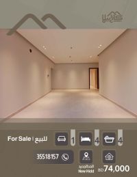 للبيع: شقق تمليك جديدة تملك حر لجميع الجنسيات في منطقة الحد الجديدة. تتكون الشقة من مجلس منفصل مع حمام، وصالة عائلية واسعة، و4 غرف نوم، ومجموع الحمامات 4، ومطبخ، وبلكونتين. المساحة حوالي 200 متر مربع. السعر 74,000 دينار بحريني قابل للتفاوض. للاستفسار.