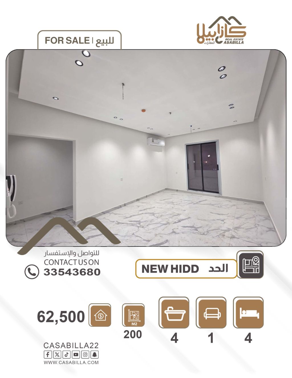 للبيع: شقة فخمة بالقرب من محطة الأنجال في الحد الجديدة. أولاً، تفاصيل الشقة: 3 غرف نوم، مجلس خاص واحد، صالة عائلية واحدة، 4 حمامات، مطبخ واحد، بلكونة واحدة، غرفة خادمة. ملاحظة: شقتان فقط في كل طابق. ثانياً، المرافق والخدمات: موقف سيارة مظلل، مصعد، قريب من الخدمات. ثالثاً، المساحة والسعر: المساحة 200 متر مربع، السعر 62,500 ألف دينار. للتواصل.