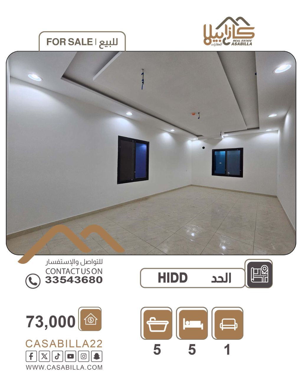 للبيع: شقة كبيرة في منطقة الحد، تصلح لبرنامج تسهيل، بموقع مميز جداً. تفاصيل الشقة: 4 غرف (2 ماستر)، 4 حمامات، مجلس خاص مع حمام، صالة واسعة، مطبخ، مرافق وخدمات، مصعد، مواقف سيارات مظللة، إطلالة على البحر. المساحة: 200 متر مربع. السعر: 73 ألف دينار. للتواصل.