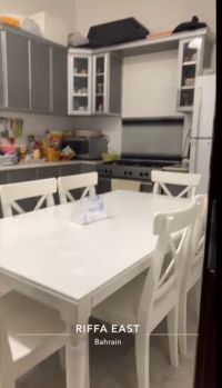 للبيع. شقة تمليك مؤثثة بالكامل في منطقة الرفاع (الحجيات)، الدور الأول، 3 غرف نوم (2 ماستر)، صالة، مطبخ مجهز بالكامل، 4 حمامات، غرفة غسيل، غرفة خادمة بالكوني، موقف سيارة خاص للشقة. مساحة الشقة 157 متر مربع. السعر 58,000 دينار (قابل للتفاوض).