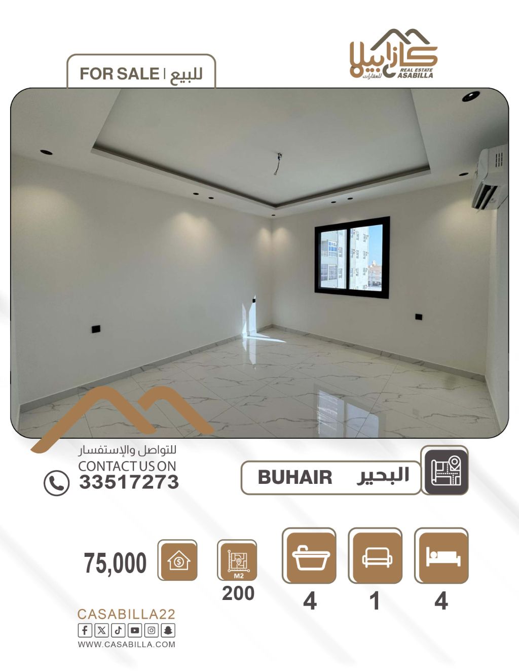 للبيع: شقة فاخرة في الرفاع الشرقي (البحير). فرصة مميزة لامتلاك شقة بتشطيب ديلوكس في بناية جديدة وفاخرة، أول ساكن، بتشطيب عالي الجودة وموقع مميز قريب من جميع الخدمات، في منطقة هادئة وراقية. تفاصيل الشقة: 4 غرف نوم (2 منهم ماستر)، 4 حمامات، 4 بلكونات بإطلالات جميلة، مجلس واسع، صالة معيشة كبيرة، مطبخ جاهز بالكامل بتشطيب راق. المرافق والخدمات: مصعد حديث، كاميرات مراقبة على مدار الساعة، مواقف سيارات.