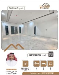 للبيع: شقة قابلة للتقسيم إلى شقتين بنظام عربي في منطقة الحد الجديدة. أولاً، تفاصيل الشقة: 1 مجلس رجال مع حمام، 1 مطبخ بنظام عربي، 1 صالة عائلية واسعة مع بلكونة، 4 غرف نوم منها 3 غرف ماستر، 2 بلكونتين. ثانياً، المرافق والخدمات: موقفين لسيارتين، مصعد، شقق قابلة للتقسيم. ثالثاً، المساحة والسعر: المساحة 240 متر مربع، السعر 75,000 ألف دينار. للاتصال.