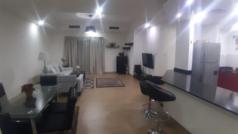 دومينز العقارية للبيع، شقة راقية للإيجار مفروشة بالكامل في الجفير. تتكون من غرفتي نوم، حمامين صالة، مطبخ مع كون. المساحة 61.3 متر مربع. الإيجار 350 دينار بحريني يشمل الكهرباء والماء بحد 25 دينار بالاضافة الى الانترنت. الموقع في منطقة الجفير الحيوية بالقرب من جميع الخدمات والمطاعم والمقاهي، مثالية للسكن العصري والراحة اليومية. المرجع 5508