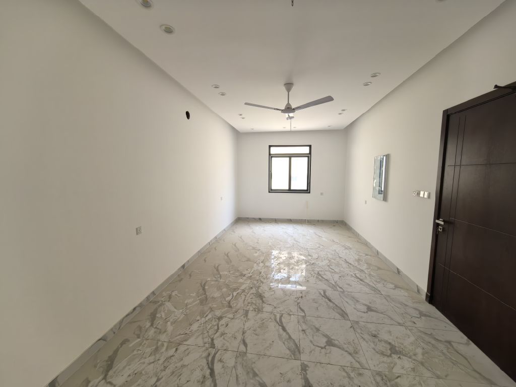 A residential apartment for sale, first occupant. The area is 124 square meters. The price is 58,500 dinars. First, the building consists of only 5 apartments. Second, each apartment has a parking space. Third, the apartment consists of a large hall, 3 bedrooms, 3 bathrooms, a kitchen, and an L-shaped balcony. The location is Hamad Al-Lawzi City. For inquiries, please call.