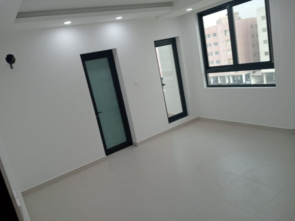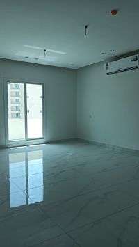 A new apartment for sale in Al Hidd, 4 bedrooms, 5 bathrooms, 3 living rooms, a majlis, two kitchens, 3 balconies, 3 parking spaces, same as the two apartments. Price 75000.
