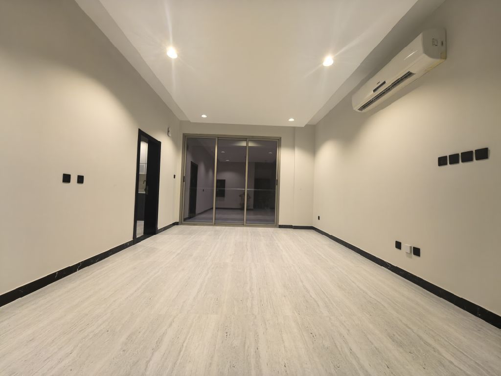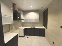 In the New Border area, a very luxurious residential apartment for sale. First, the area is about 130 square meters. Second, the price is 52,000 dinars. Details include 3 rooms (including a master room), a bathroom in the hall with two balconies, a kitchen, services, a parking space, an elevator, a security guard, and surveillance cameras. For inquiries, please contact.