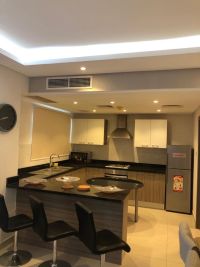 An apartment in the Burj Bruges Residence - Amwaj, fully furnished, with a view of the swimming pool. The area is 136 SQM. Components living room, two bedrooms, two bathrooms, kitchen with dining table, storage room, parking space, gym, game room, swimming pool and beautiful garden, children'play area. Price 58 thousand