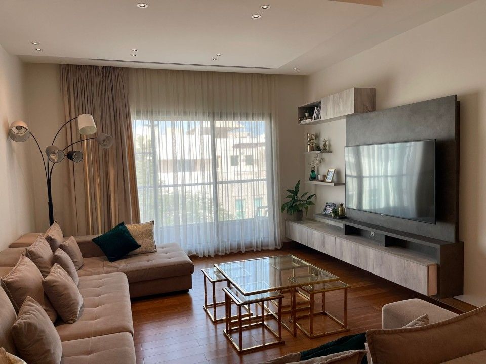 Dominions real estate for sale A luxurious apartment in Janabiyah, close to Mercado Mall. It contains three bedrooms, three bathrooms, a maid's room or spacious storage, a fully equipped open kitchen, a spacious living room, a garage for two cars, and an apartment area of 180 SQM. The price is 85000 dinars. REF 3964. For inquiries, please contact Ahmed Jaafar Munther Al Ibrahim