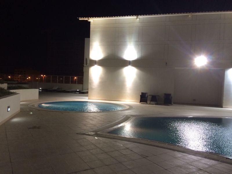 Apartment for rent for 500 dinars in Zawia 2, Amwaj Lagoon. Features include a balcony, small store, laundry room, 2 bedrooms, 3 bathrooms, hall, open kitchen, full furnishings, swimming pool, parking, 24-hour security, hall for residents, and 138 sqm area. Sale price is BD 81,000.