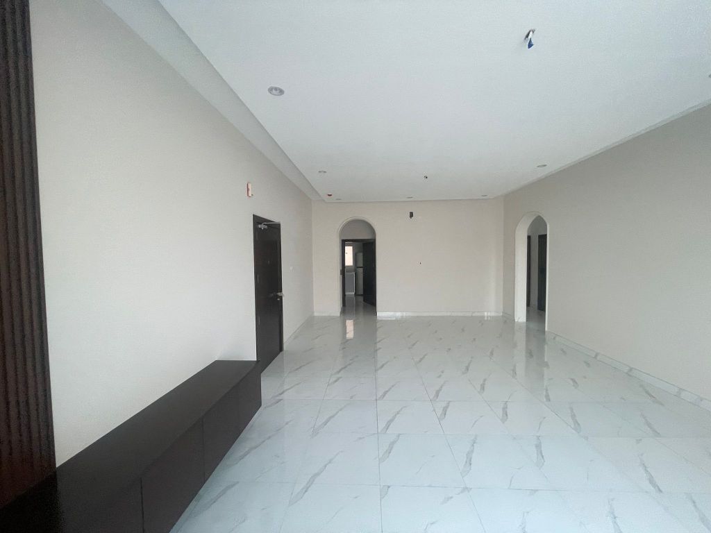 For sale: A new freehold apartment with an area of 140 square meters in Riffa, Abu Quwara. It consists of a large hall, three rooms, a laundry room, three bathrooms, and a fully equipped kitchen. The building is new and includes all services. The price is 73,000 dinars. For contact, contact Abshar Real Estate Services.