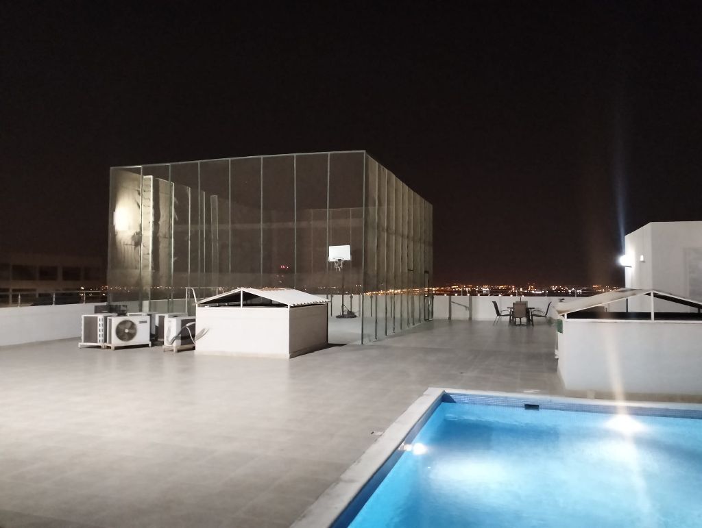 For sale: An apartment in the Saray Tower on an upper floor, consisting of two bedrooms, a living room, an open kitchen, two bathrooms, and a balcony. Fully furnished. Tower amenities include a swimming pool, basketball court, gym, children's play area, parking, and 24-hour security. The asking price is 65,000 dinars, negotiable within reason. Contact for viewing.