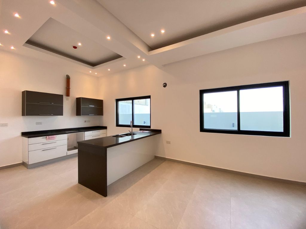 Domains Real Estate for sale. New apartments for rent in the commercial area of Durrat Al Muharraq, with a strategic location in the new area near Rayya Port. A 2-bedroom apartment, very luxurious, unfurnished, on the ground floor. Very large living room, open kitchen with a balcony. Total area 175 square meters. 290 Bahraini dinars with air conditioning, excluding electricity. Reference 4543.