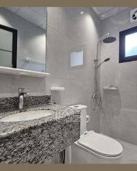 For sale in the New Hed area, close to all services. First, apartment details: 1 men's living room with a bathroom, 1 spacious family living room, 3 bedrooms including 2 master bedrooms, 4 bathrooms, 1 kitchen, 3 balconies. Second, facilities and services: sewage system, shaded car parking, split air conditioners, proximity to services and public facilities, near a mosque. Third, areas: 200 square meters on engineering maps, 180 square meters in the document. Fourth, price: 64,000 dinars. For contact.