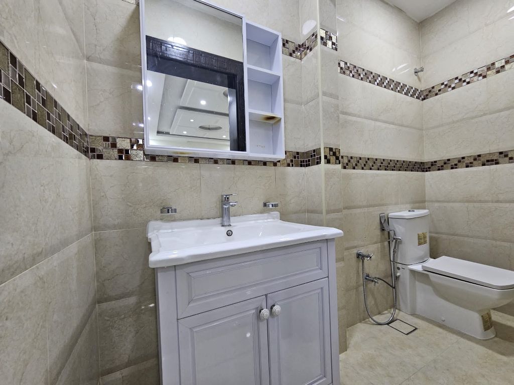 For sale: An apartment in the New Hidd area, close to all services. First, apartment details: 1 spacious family living room, 3 bedrooms, 3 bathrooms, 1 kitchen. Second, facilities and services: shaded parking, split air conditioners, proximity to services and public facilities, near a mosque. Third, area: 125 square meters. Fourth, price: 46,000 Bahraini dinars. For contact.