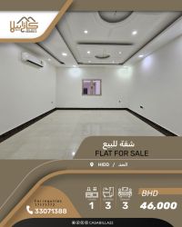 For sale: An apartment in the New Hidd area, close to all services. First, apartment details: 1 spacious family living room, 3 bedrooms, 3 bathrooms, 1 kitchen. Second, facilities and services: shaded parking, split air conditioners, proximity to services and public facilities, near a mosque. Third, area: 125 square meters. Fourth, price: 46,000 Bahraini dinars. For contact.