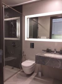 For sale: A luxurious residential apartment in Seef, an unmissable opportunity. Invest in a fully furnished and equipped residential apartment with an area of 47.90 square meters. The apartment type is a studio on the upper floor (34th floor). Features include central air conditioning, fiber internet service, and full furnishing with a modern design. Tower amenities include a balcony and barbecue area, sauna, indoor/outdoor swimming pools, steam room, 24-hour security, and a gym. The asking price is 65,000 Bahraini dinars.