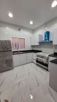 For sale, new apartments, first occupant, in Riffa Abu Quwara. A two-story building consisting of 3 rooms, a maid's room, 3 bathrooms, a kitchen, and a large hall. Includes a refrigerator, oven, and washing machine. Price only 65,000. For contact.