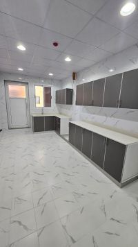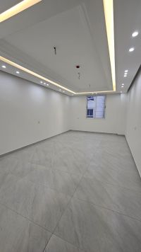 For sale: A new apartment in Al-Hadd, Arabic system, can be divided into two apartments. Area: 235 square meters. Each floor is a private apartment in the residential building, consisting of 4 bedrooms, 2 living rooms, 2 kitchens, 5 bathrooms, 4 balconies, 2 car parking spaces. Price: 77,000 Bahraini dinars.