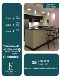 We have (12) new apartments for sale, first occupancy, excellent Arabic detailing, in a prime location in Al-Hadd Al-Jadeed. Each apartment consists of a living room, a bathroom, and a laundry room separate from the apartment, with a private entrance. Features include: 4 - spacious bedrooms, 3 - bathrooms, 1 - large and spacious hall, 1 - suitable kitchen, 4 - balconies with air conditioners. The apartment area is (230) square meters. The requested price per apartment is (69) thousand dinars. License number: B201804 / 0125. For contact: Ishbiliya Office, Bouabdallah. Ad number: 69.