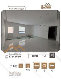 For sale: An apartment in the Al-Hadd area for 61,000 dinars. Apartment details: 3 master bedrooms, a spacious living room, a private majlis with a bathroom, a kitchen with a balcony, 3 balconies. Facilities and services: elevator, car parking, prime location with air conditioners. Apartment price: 61,000 dinars. Apartment area: 180 square meters. For contact.