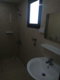 شقة نصف مفروشة مع مكيفات للإيجار في منطقة سند الناصفة، تتكون من غرفة نوم واحدة، حمام واحد، مطبخ مفتوح في الصالة، مع سطح، مصعد، وموقف سيارات. المطلوب 180 دينار شامل الكهرباء والبلدية