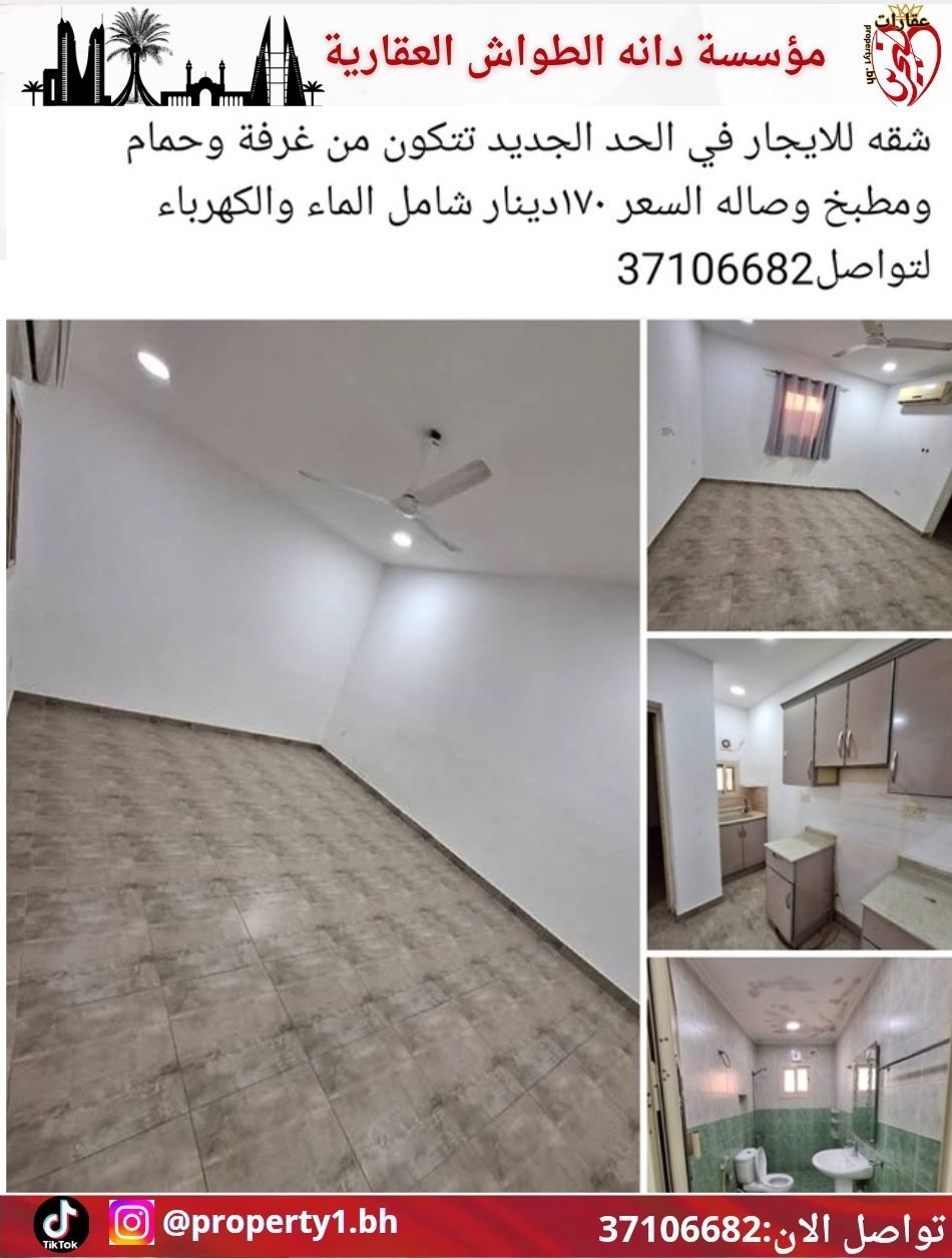 شقة للإيجار في الحد الجديد تتكون من غرفة وحمام ومطبخ وصالة. السعر 170 دينار شامل الماء والكهرباء. للتواصل