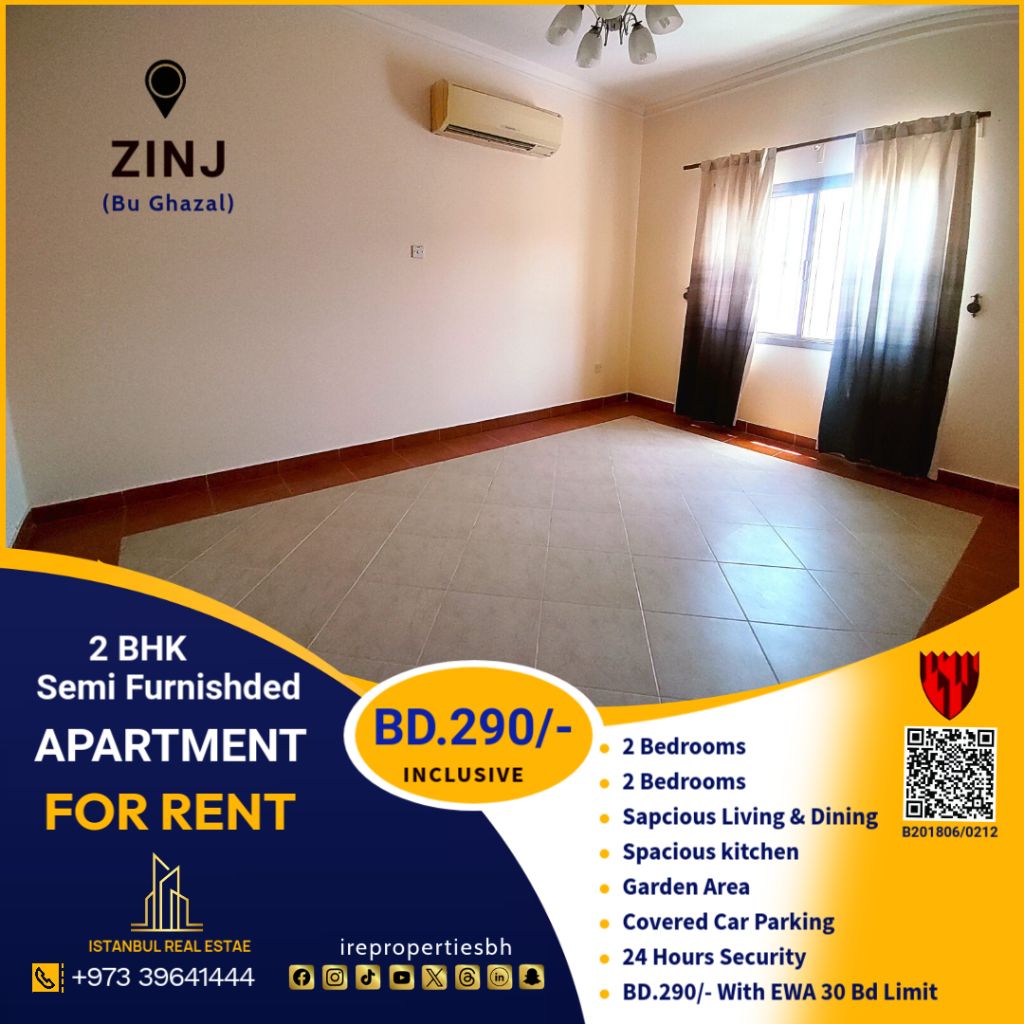 شقة مفروشة غرفتين وصالة للإيجار في الزنج بوغزال 290 دينار بحريني / مع الكهرباء والماء. تقع هذه الشقة السكنية شبه المفروشة في منطقة الزنج بوغزال وتتكون من غرفتي نوم واسعتين، حمامين، صالة واسعة، مطبخ واسع. موقف سيارات مغطى، سهولة الوصول الى مدرسة الالفية الجديدة لولو هايبر ماركت، سوبر ماركت الجسرة السقية، الحورة المنامة، مستشفى السلمانية الخ. الإيجار 290 دينار بحريني مع