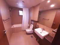 للإيجار: شقة مفروشة في أمواج، تحتوي على غرفتين، حمامين، مطبخ، صالة، مصعد، وموقف للسيارات، بسعر 350 دينار بحريني، شاملة الكهرباء بحد أقصى 30 دينار بحريني. للتواصل، البرج الجديد للعقارات.