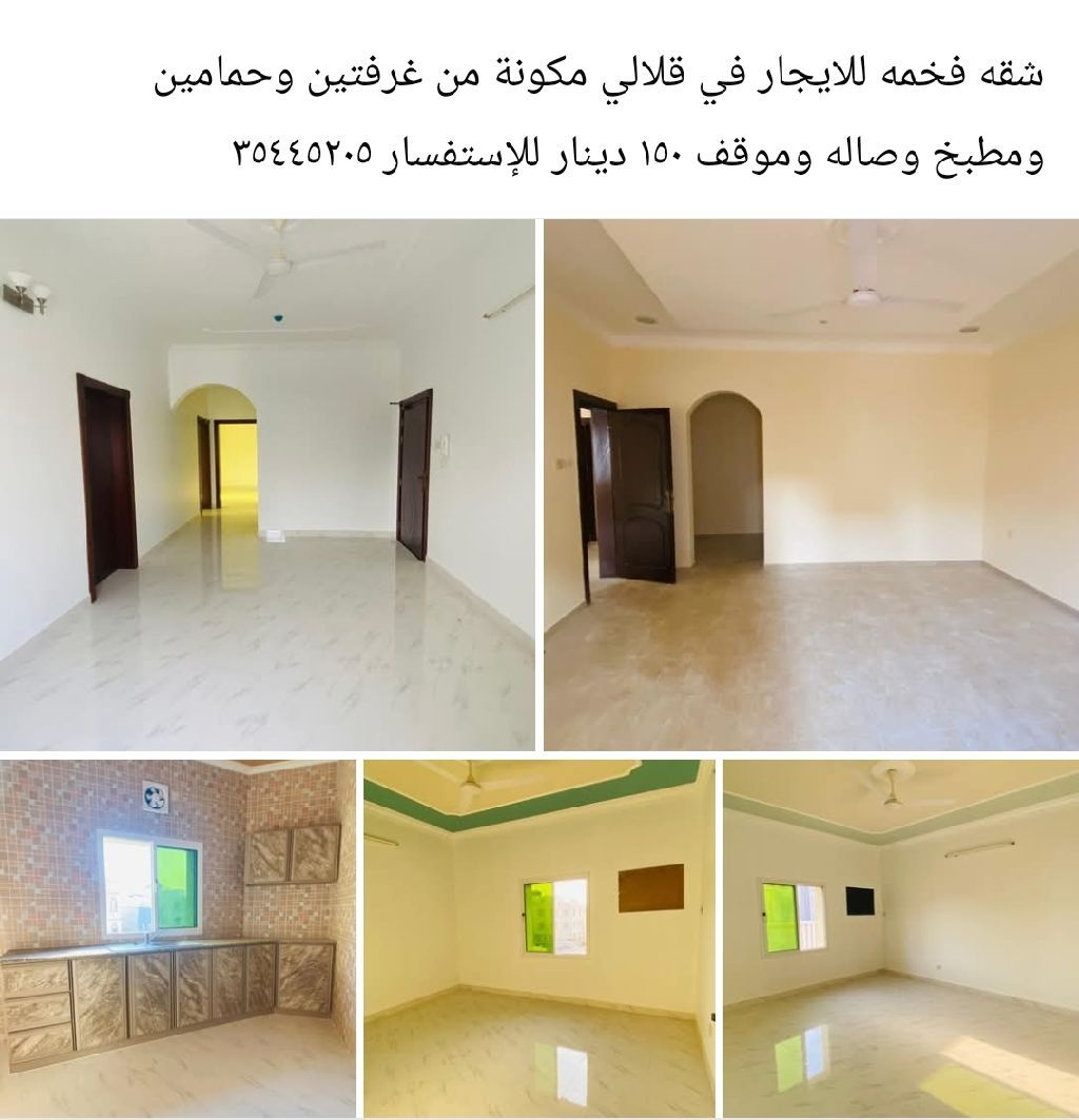 شقة فاخرة للإيجار في قلالي، تتكون من غرفتي نوم وحمامين ومطبخ وصالة وموقف سيارات بسعر 150 دينار. فرصة لا تعوض في موقع مميز