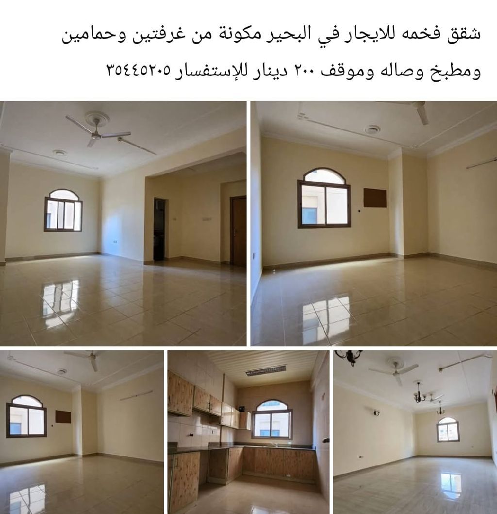 شقق فاخرة للإيجار في البحرين، تتكون من غرفتين نوم وحمامين ومطبخ وصالة وموقف سيارات بسعر 200 دينار.