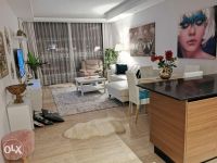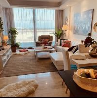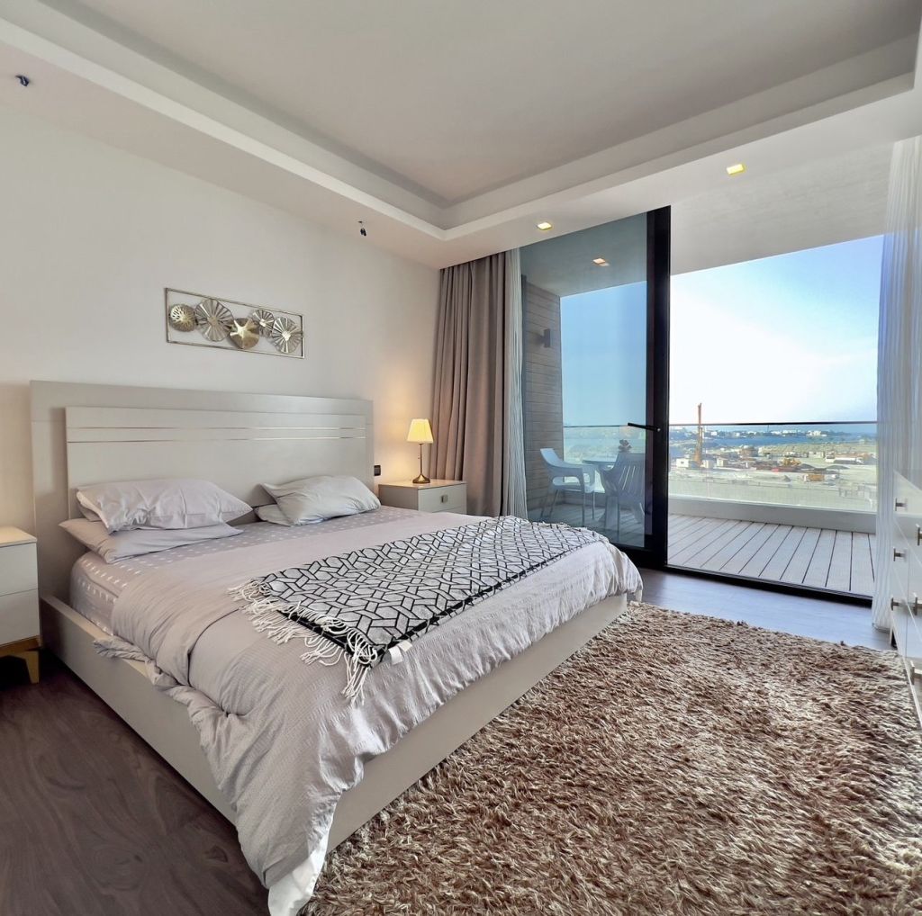 شقة للإيجار، مجددة حديثا مطلة على البحر في دلمونيا. تحتوي على غرفة نوم واحدة وصالة، وحمامين ومطبخ وبلكونات. الإيجار الشهري 400 دينار