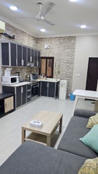للإيجار: شقة أرضية شاملة الكهرباء في جرداب قرب الدوار. مكونة من غرفتين، صالة، مطبخ مفتوح، حمامين، وبارك. يوجد بها بعض الأثاث. المطلوب 220 دينار شاملة الكهرباء.