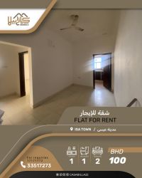 للإيجار: شقة في مدينة عيسى، قريبة من المعهد الحديث، مناسبة للسكن العائلي في حي هادئ. وهي قريبة من الخدمات الحيوية (مسجد، سوبر ماركت، مدارس، مجمعات تجارية، منتزه، إلخ). تتكون الشقة من غرفتي نوم، حمام واحد، صالة، ومطبخ. يوجد موقف سيارات مظلل. الإيجار 100 دينار، غير شامل الكهرباء والماء. للتواصل.
