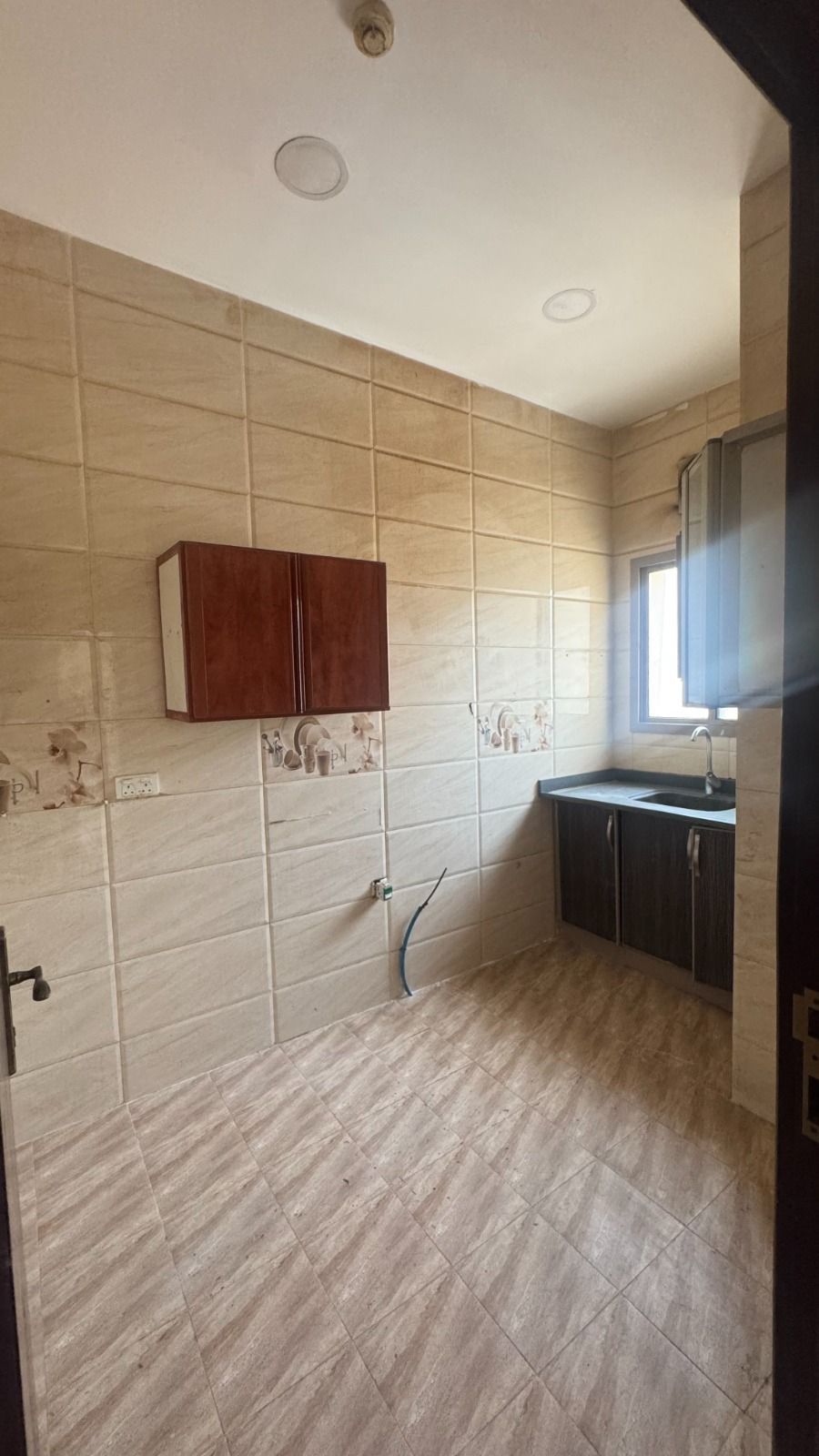 شقة للإيجار في الرفاع الشرقي، تحتوي على غرفتين وحمامين وصالة ومطبخ وبالكونة. الإيجار 150 دينار، غير شامل الكهرباء والماء