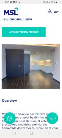 هاربر رو - برج فينانشال هاربور هورايزون، غرفتي نوم، مساحة 143.2 متر مربع، السعر 750 دينار بحريني (يشمل الكهرباء والمياه وتبريد كاب 50 دينار بحريني).