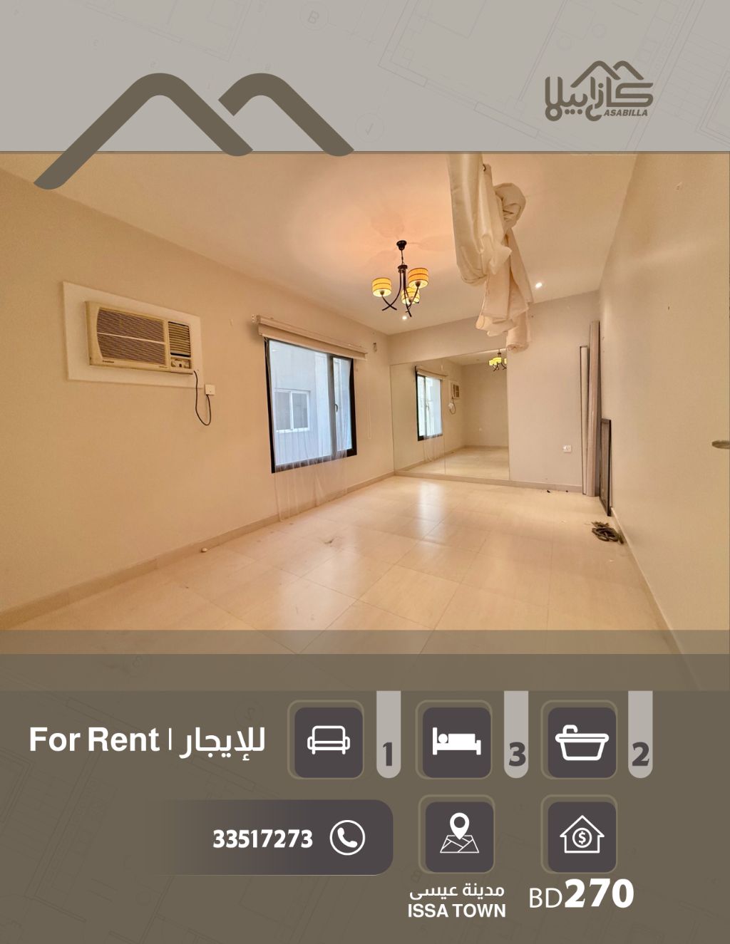للإيجار: شقة في مدينة عيسى توبلي مع مكيفات هواء، على شارع الخدمات، مناسبة للسكن العائلي في حي هادئ، في بناية راقية. أولاً، تفاصيل الشقة: 3 غرف نوم (واحدة ماستر)، حمامين، صالة، ومطبخ. يوجد مصعد، وهي قريبة جداً من البحر. ثانياً، المرافق والخدمات: قريبة من الخدمات الحيوية تشمل السوبر ماركت، المجمعات التجارية، وبارك مظلل. الإيجار 270 دينار، غير شامل الكهرباء والماء. للتواصل.
